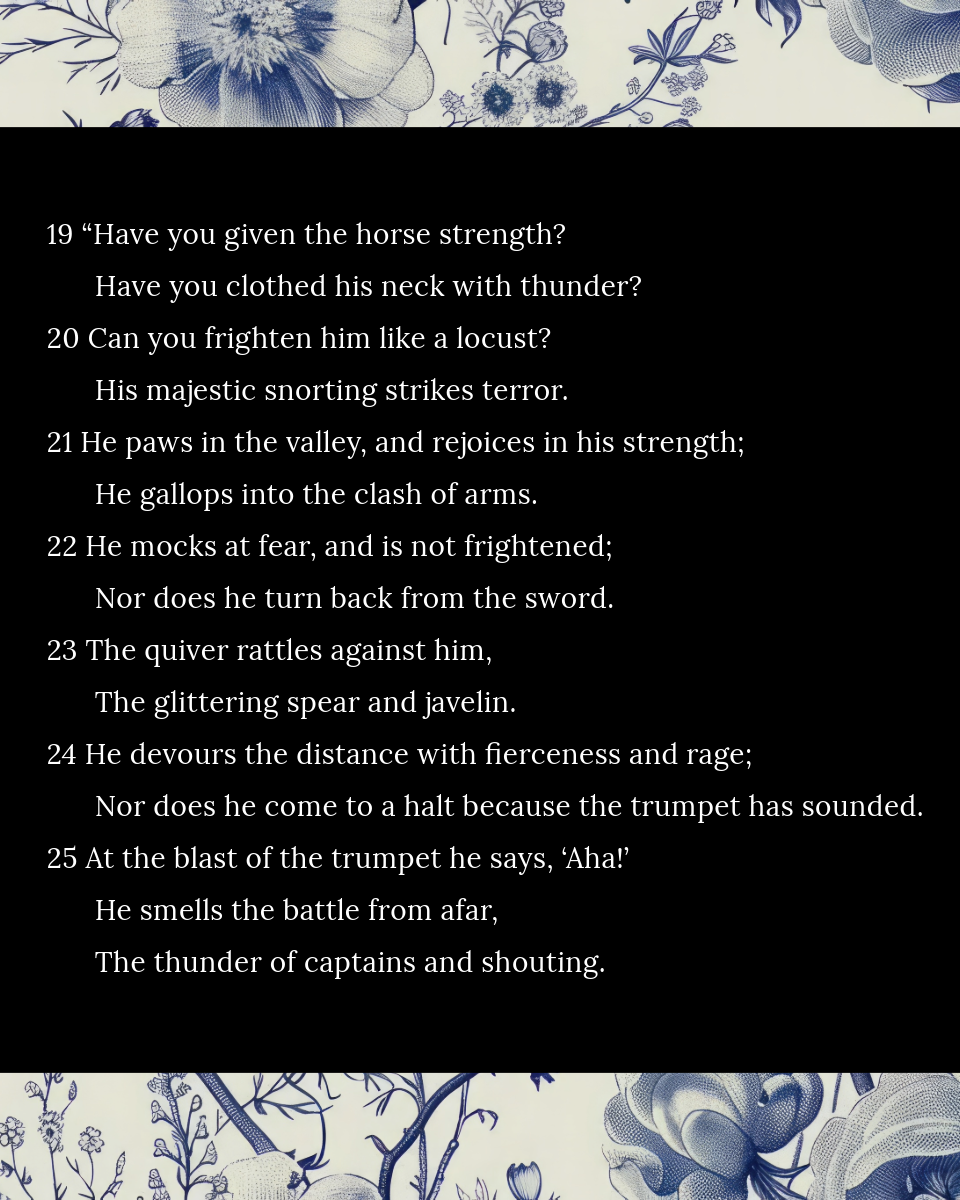 Outside of Greek mythology, the presence of the horse can be observed in all major religions, as well as in lesser-known spiritual traditions. In the passage above, taken from the Bible, the horse is portrayed as a symbol of power and freedom. Later, in Revelation, horses serve alongside the messengers of the apocalypse, often referred to as the Four Horsemen of the Apocalypse. In this same text, Christ is depicted riding a white horse. The white horse is consistently set apart, symbolizing purity, innocence, and divine righteousness.
